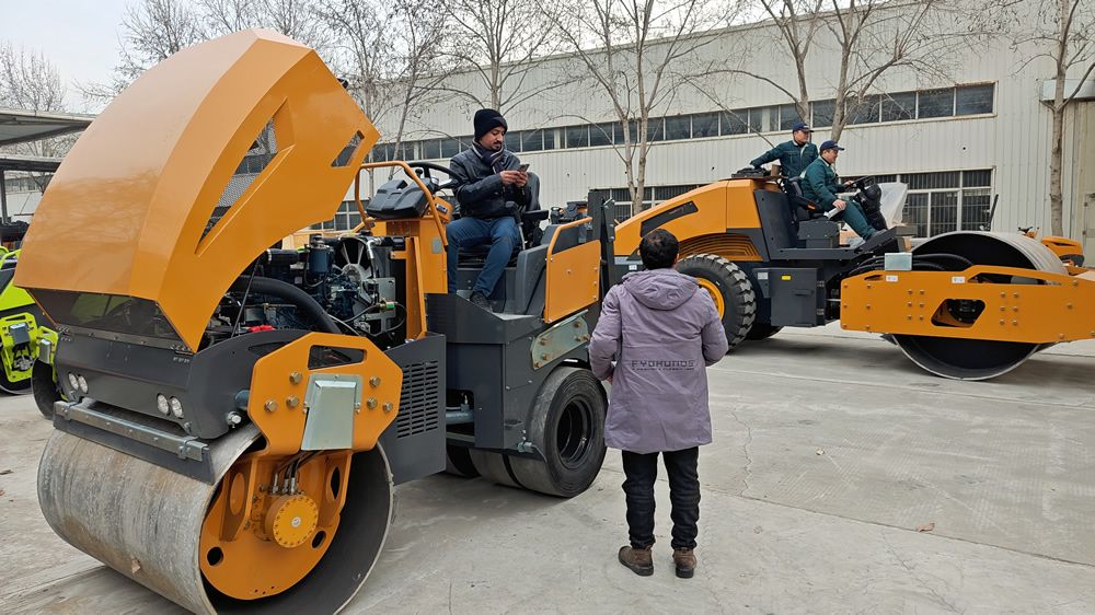 12月24日,某國外客戶2人來我廠參觀考察,在工作人員的陪同下,參觀了我廠生產(chǎn)車間與展廳并試駕小型壓路機,詳細向業(yè)務(wù)人員了解各個型號的配置與參數(shù),對我廠生產(chǎn)的壓路機、移動照明車,滑移裝載機等產(chǎn)品表現(xiàn)出濃厚興趣,初步達成合作意向